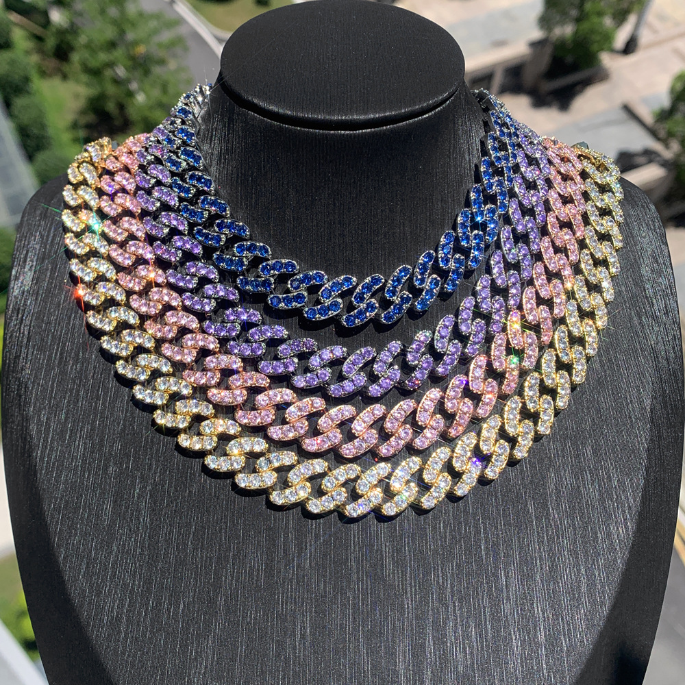 欧米の国境を越えた12mm幅のキューバの大きなチェーンのジルコンのネックレスのcubanチェーンのカップルのネックレスのヒップホップの新型