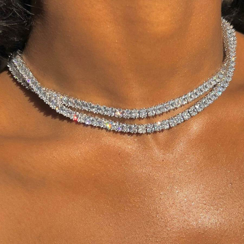 欧米の5mm正方形ジルコンテニスチェーン女性ヒップホップネックレスtennisチェーンクロスボーダー新商品