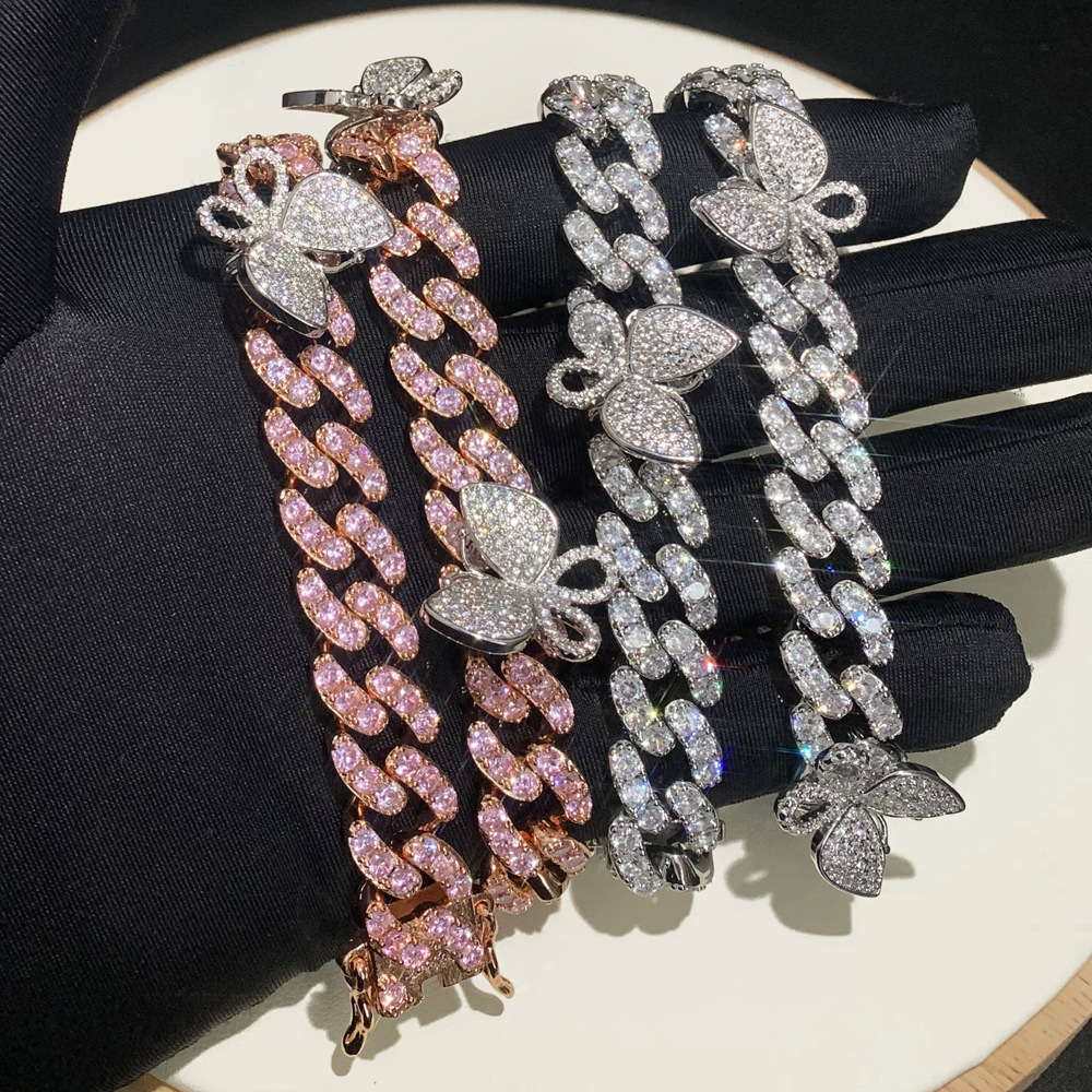 欧米の国境を越えた12mmのキューバチェーンにジルコン蝶のネックレスを入れた女性の短いネックレスヒップホップの新型購入購入