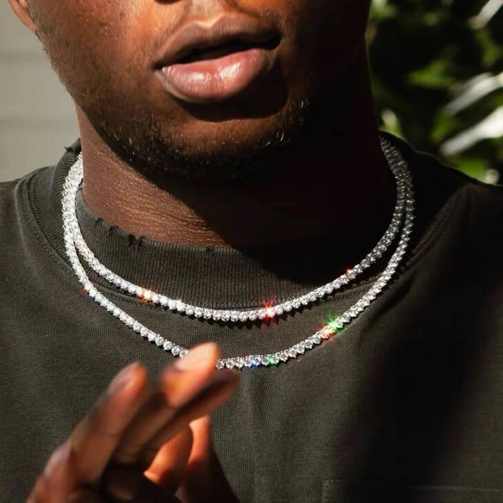 欧米の3mmジルコンの3爪はtennisチェーンのネックレスをはめ込んで国境を越えてヒップホップの新型の女性のネックレスのメーカーを越えて直接販売します。