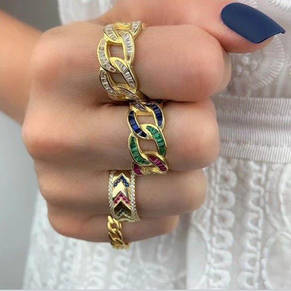 Ins新商品クロスボーダーヒップホップカラースクエアジルコンチェーンリング速売外国貿易レディースリング