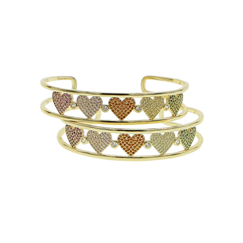 国境を越えたヒップホップカラージルコンハート型開口ブレスレット欧米のトレンド新型女性ブレスレットメーカー直販