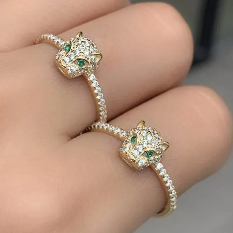 2022国境を越えたヒップホップの新しいヒョウの頭の指輪hiphopファッションシンプルな個性的な女性の指輪卸売り