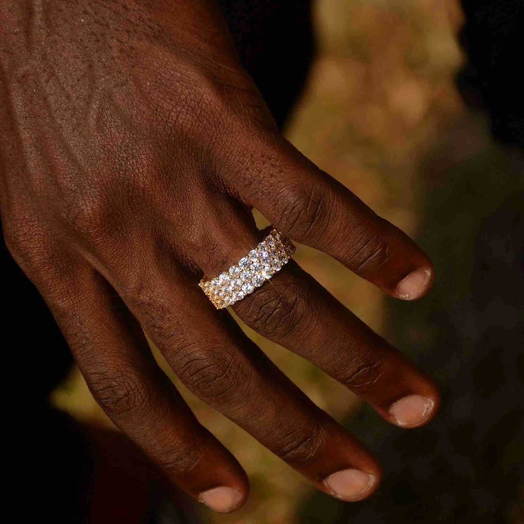 クロスボーダーのヒップホップの新型ファッションジルコンの3列の指輪の速売通の対外貿易はダイヤモンドの金色の指輪の卸売りをいっぱい入れます。