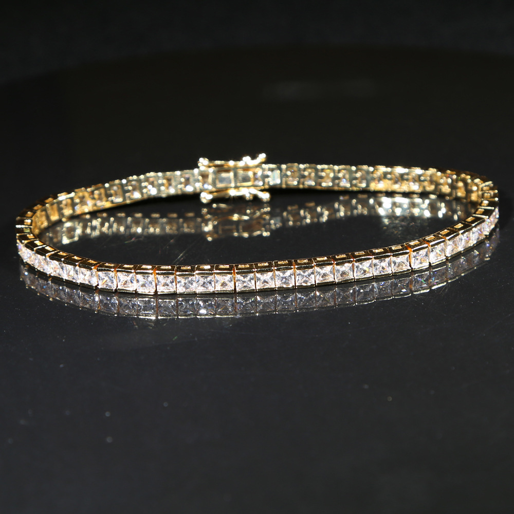 欧米のinsの正方形のジルコンのテニスのチェーンのtennis取っ手の8mmのジルコンの単列のヒップホップのブレスレットの卸売り