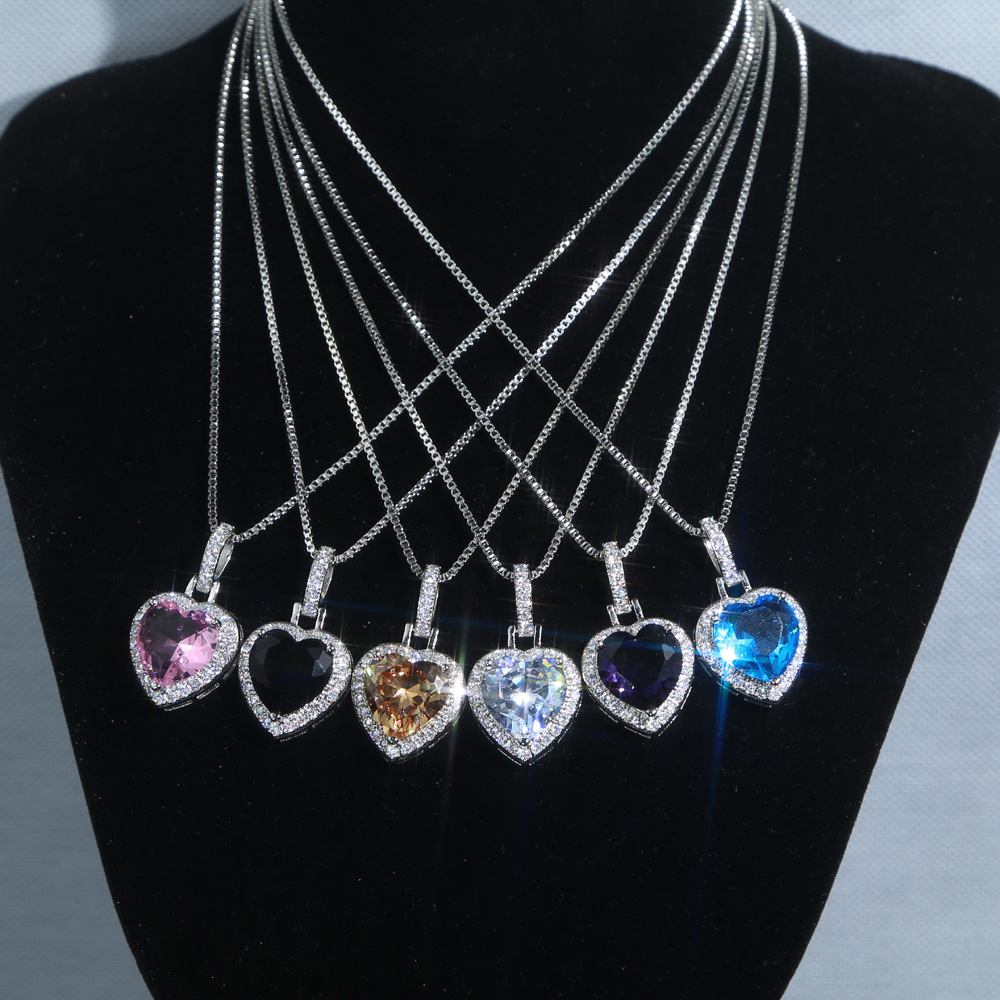 夏の新型20mmハート型ジルコンペンダント欧米ファッションファッションボックスチェーン女性ネックレス
