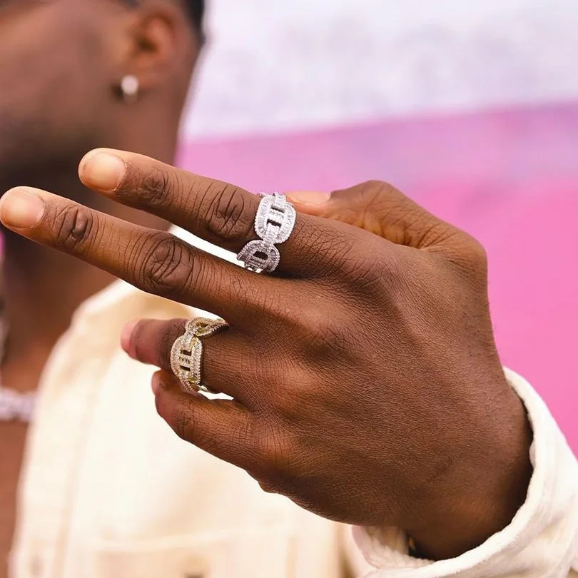 2022欧米の国境を越えたデザインの新しい金色の銀色のパンクヒップホップジルコンの指輪ゴシック式の指輪スキューバチェーン