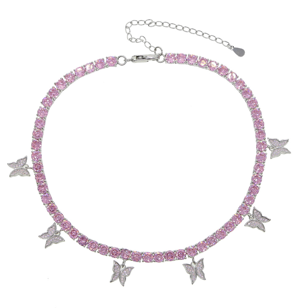 クロスボーダー5mmホワイトゴールドジルコンテニスチェーンネックレスtennis choker蝶ペンダント調整可能32 + 10cm