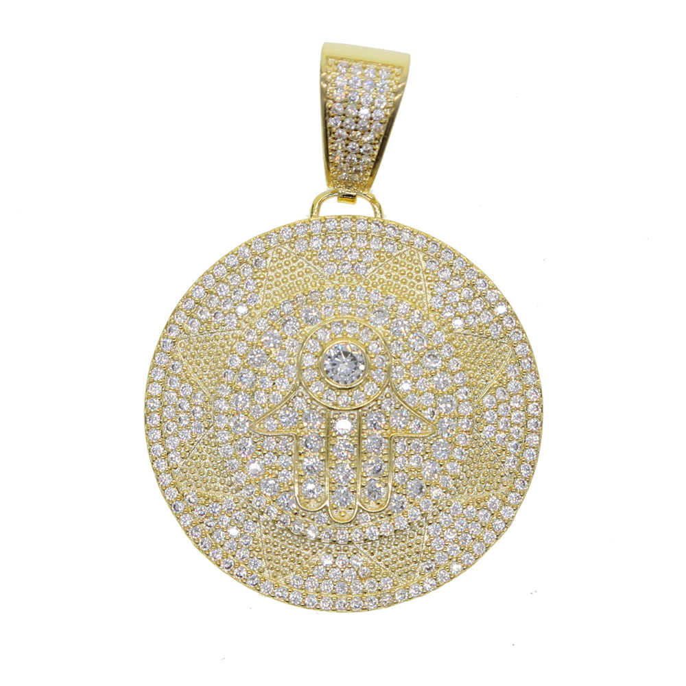 欧米外貿新作ハムサ手のひらペンダントネックレス、ヒップホップ・ラップ風ジルコン付きメンズアクセサリー、卸売販売中
