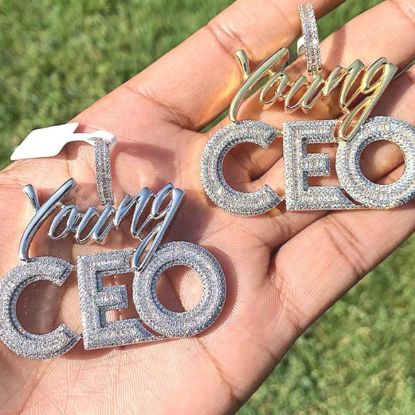 クロスボーダーヒップホップ新作「YOUNGCEO」文字ペンダント、ダイヤモンドを全面にあしらったメンズヒップホップジュエリー、一件代発送、トレンド商品
