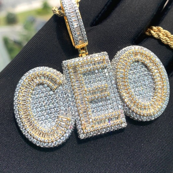 ヒップホップの装飾品の新型のドリルいっぱいのジルコンはアルファベットのceoのペンダントの電気の2色の越境して代行します。