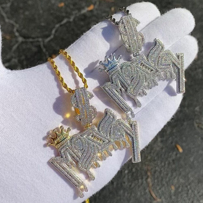 Hiphop街頭の流行の新しいジルコンはアルファベットのmoneyペンダントをはめ込んで15mmのスキューバチェーンのネックレスを配合することができます。