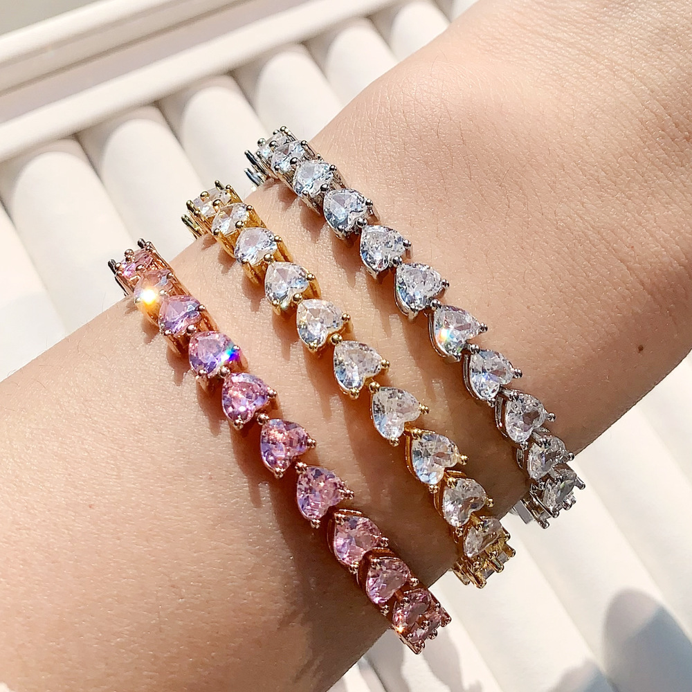 5mmハート型ジルコンテニスチェーンブレスレット3色卸売ハートジルコンブレスレット