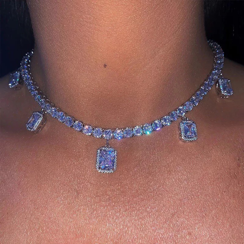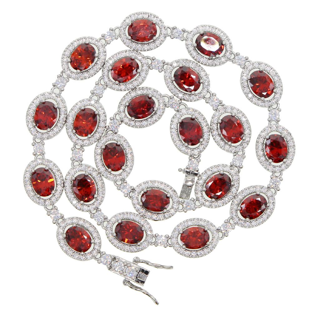欧米の国境を越えたネックレスに赤黄白カラージルコンをはめ込んだ女性ヒップホップテニスチェーンのネックレスは速達で購入した