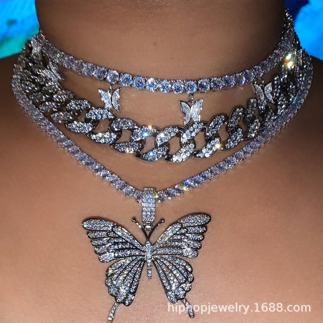 クロスボーダー10mmキューバチェーン満ドリル蝶ペンダントchoker代理ヒップホップネックアクセサリー