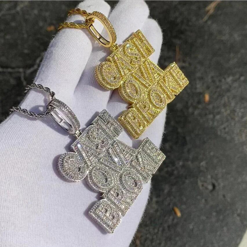 国境を越えた新商品の満ドリル文字ペンダントcashva broke電気金は15mmのキューバチェーンを着ることができる