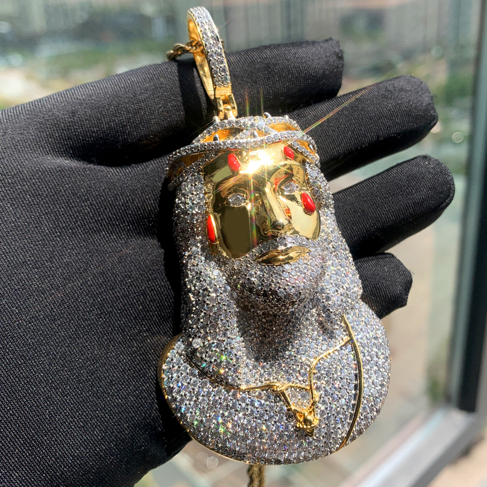 欧米の外国貿易の新商品のレトロな創意の顔写真のペンダントのヒップホップの銅はジルコンの滴油の男性のネックレスのファッションの装飾を入れます。