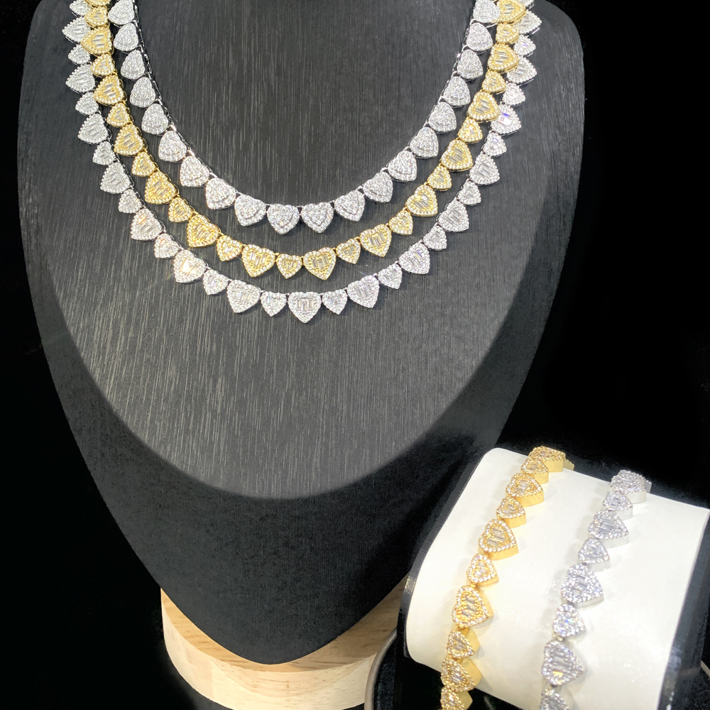 欧米のヒップホップキューブチェーンの立体的な愛はネックレスの潮人の街のダンスの男女の同じ色の鎖のチェーンのブレスレットをつなぎます。