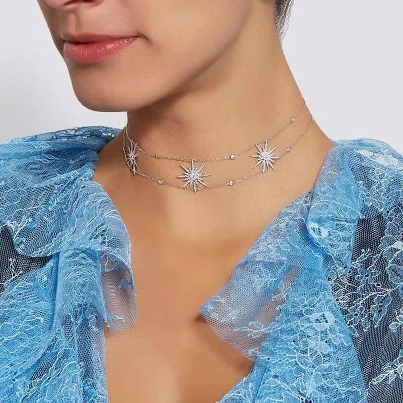 欧米のファッションの新型のchokerの短いネックレスは小さくジルコンの星の部品の女性の鎖のチェーンのネックレスを入れて卸売りします。