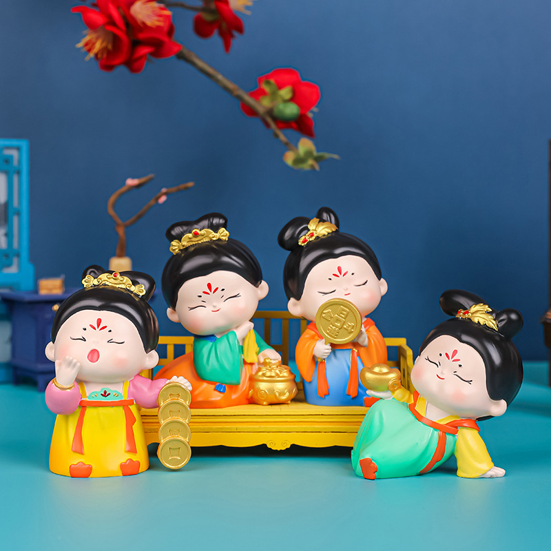 四大財女古風かわいい唐仕女置物国潮ホームオフィスデスクトップ装飾樹脂文創小置物