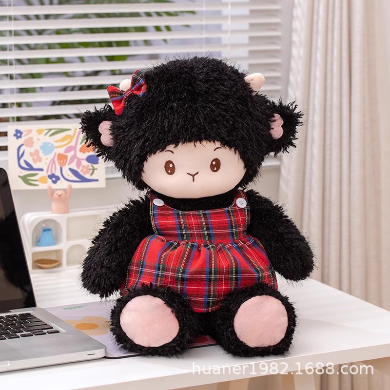 かわいい羊の人形が寝ている人形を抱いて枕を抱いている女の子が寝ているぬいぐるみの子供が誕生日プレゼントをなだめる