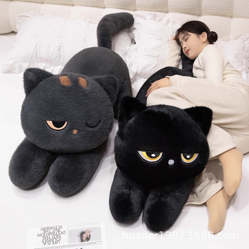 国境を越えてかわいい大きな目の黒い猫のぬいぐるみの誕生日プレゼントは女の子に寝て枕を抱く人形をプレゼントします