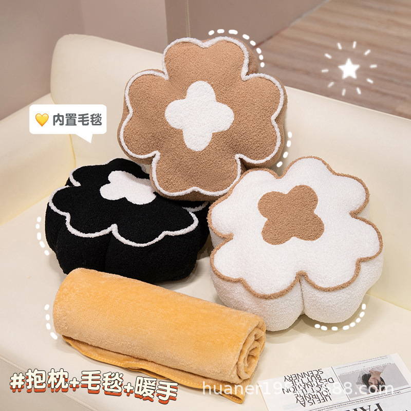 Ins風四葉草抱枕昼寝毛布二合一学生寮暖手抱枕オフィス昼寝抱枕毛布
