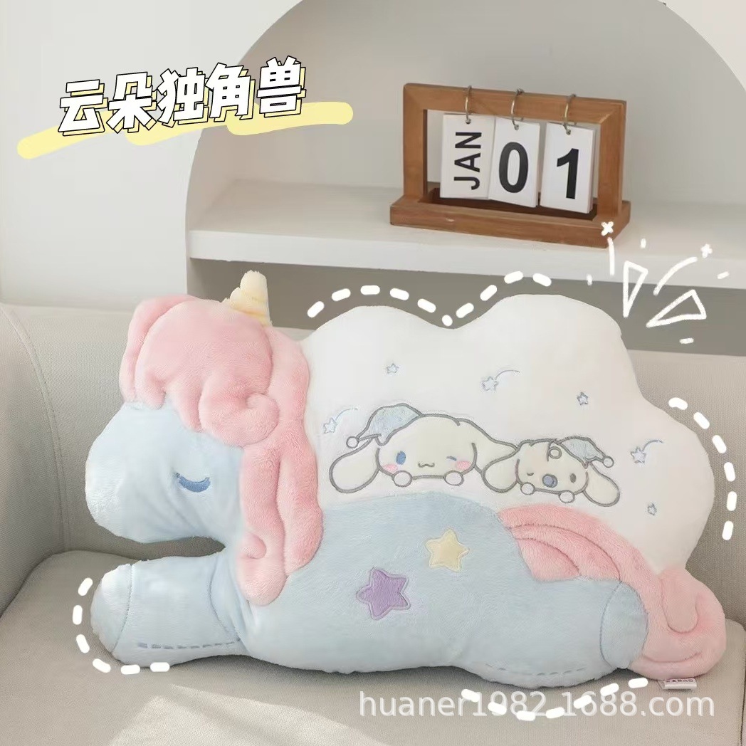 日本のかわいい少女の心の漫画の夢幻の雲の小さい白い犬のユニコーンの子供のベッドの頭のぬいぐるみの抱き枕のクッション枕