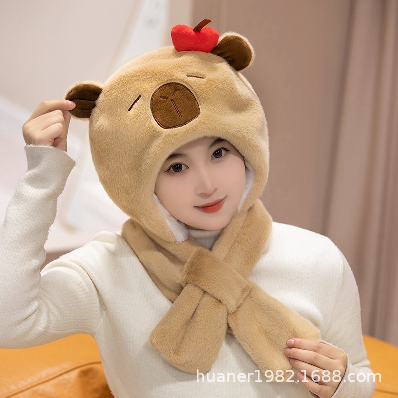 かわいい厚手のカピバラのぬいぐるみの帽子の子供は冬に保温防寒耳のカピバラの頭の雷鋒帽を厚くします。