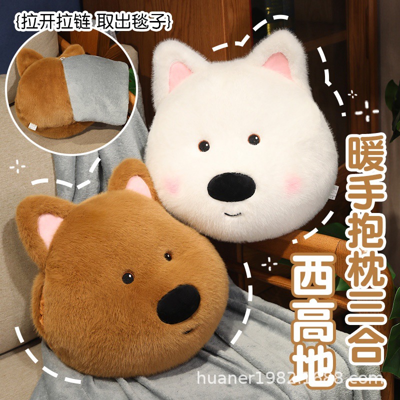 子犬のぬいぐるみに変身しました。子供用の白い犬のぬいぐるみは枕を抱いて誕生日プレゼントします。