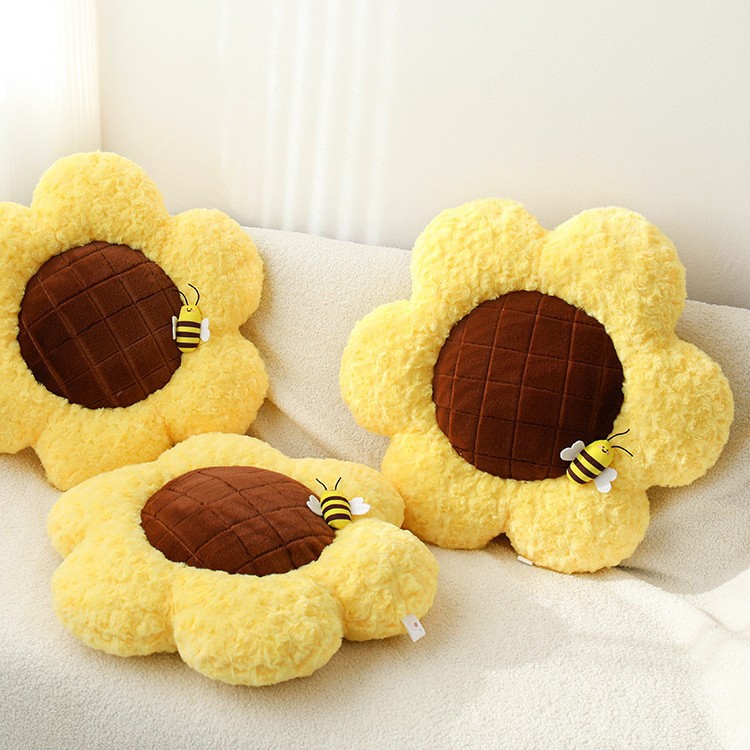 ネットの赤い蜂の太陽の花のひまわりは枕のベッドの寝室の窓のマットのかわいいベッドの頭の装飾のクッションのソファーを抱きます。