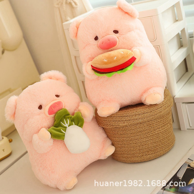 ネットの赤いピンクのハンバーグのブタの公仔のかわいい女子学生は寝ます人形の白菜のブタの人形の語呂合わせの梗のお笑いの贈り物を抱いています。