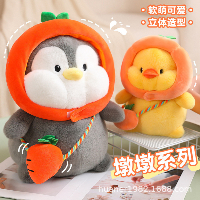 かわいいカメのリュックサックのアヒルのぬいぐるみの果物のリュックサックの小さい黄色のアヒルのおもちゃの子供はおもちゃの誕生日のプレゼントを抱いて寝ます。