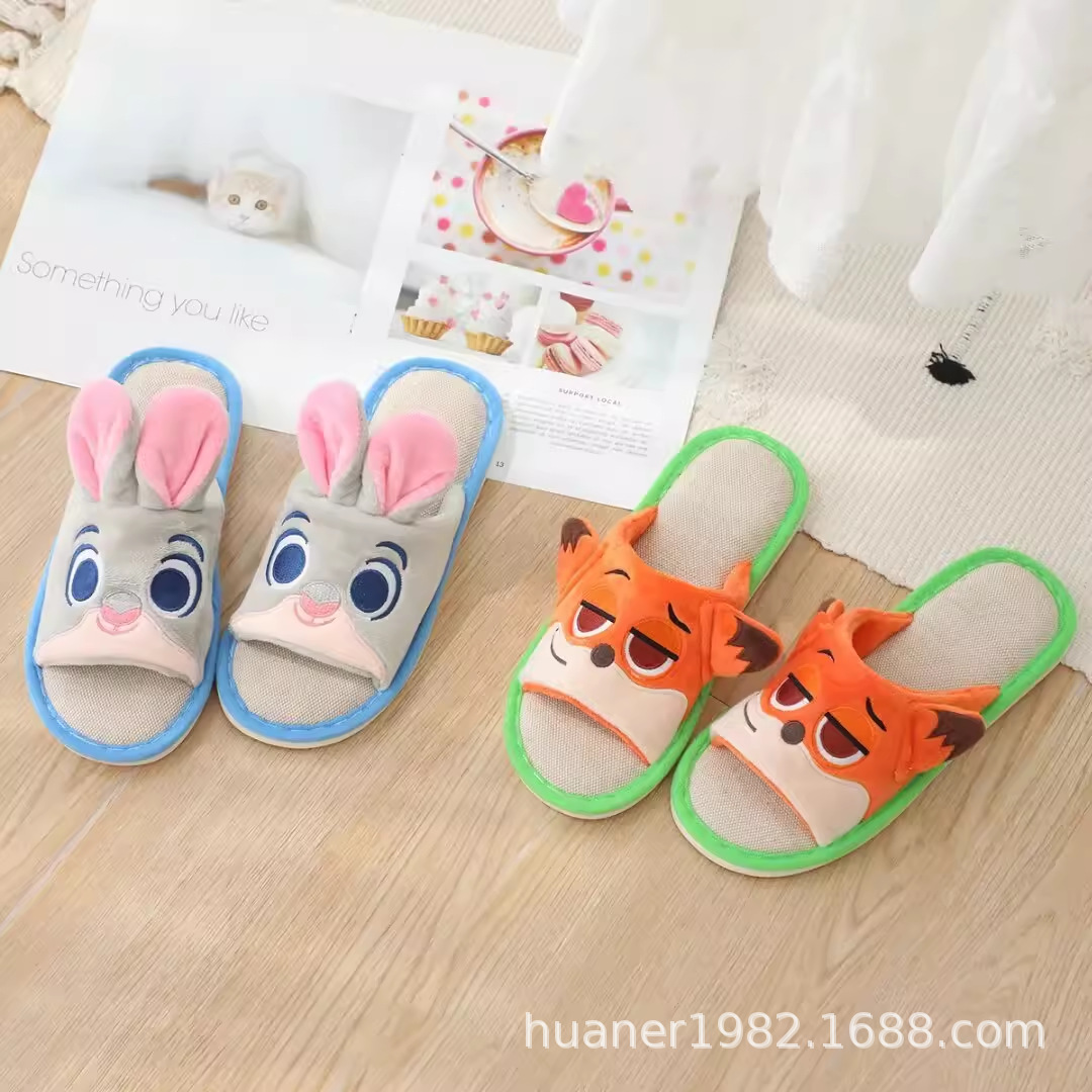 動物城のかわいい漫画の少女の心の魚の口の部屋の靴のぬいぐるみの室内の滑り止めの露指のスリッパの女性の綿のスリッパ