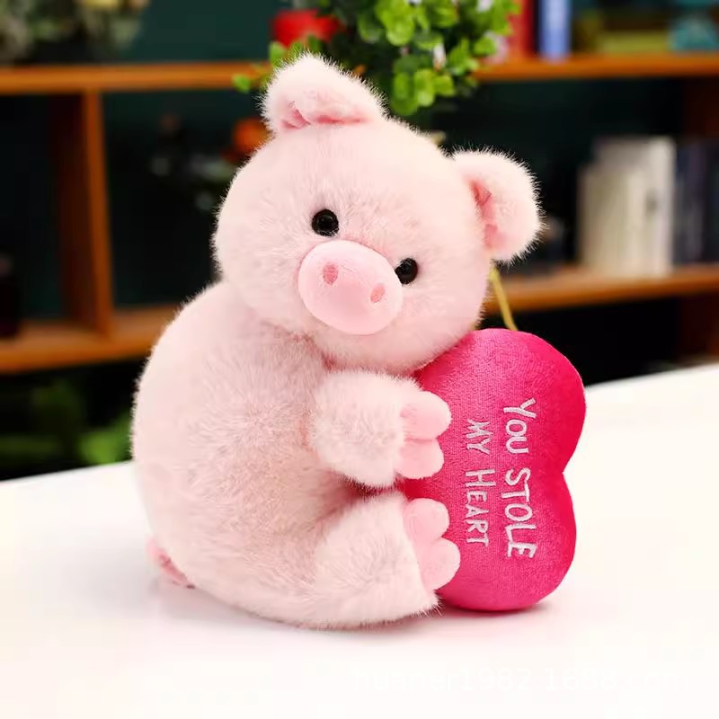 赤ちゃんを抱いてピンクの愛の豚を抱いて寝ます。