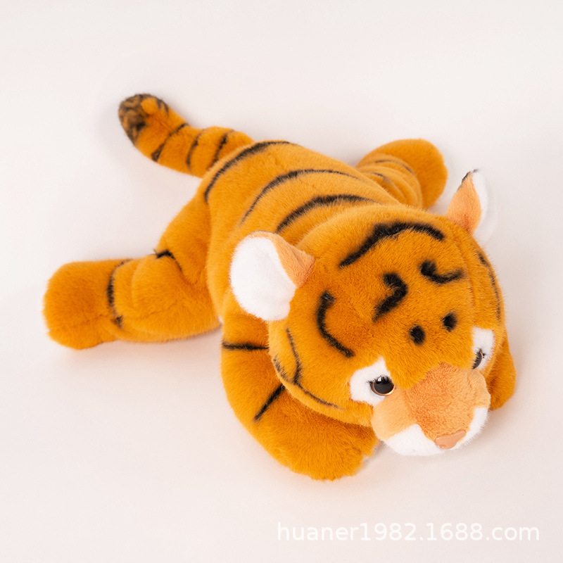 クロスボーダーかわいいシミュレーション虎公仔森林動物園は東北虎児童ぬいぐるみの誕生日プレゼントに腹ばいになっている
