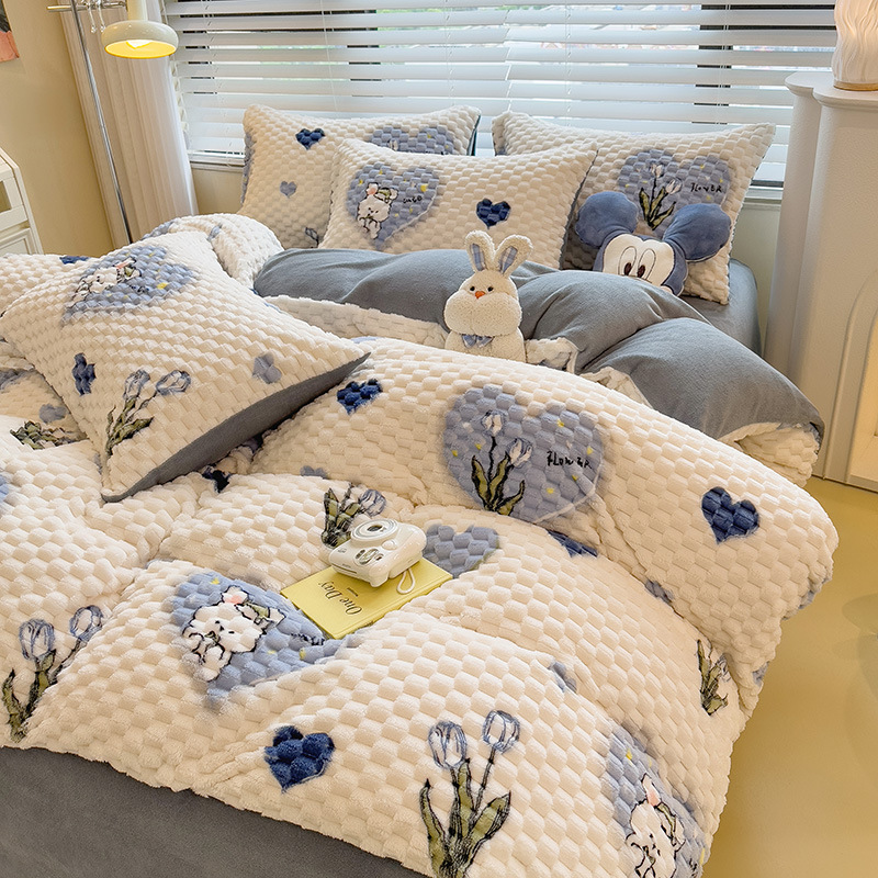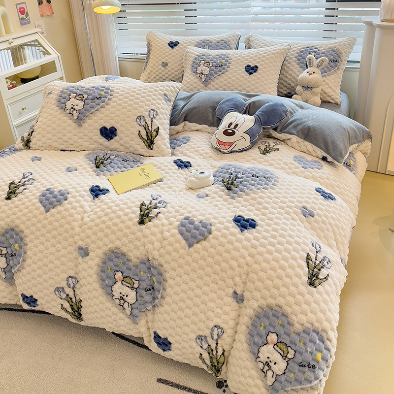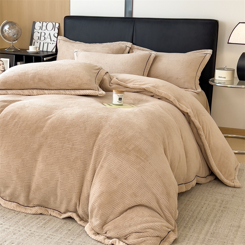 新しい厚手のミルクの毛のジャカードの豆の毛の4つのセットの寝室のベルベットのシーツの布の布の布の布の布の布の3つのセット