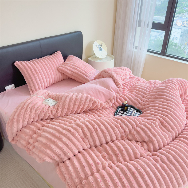 新しい秋冬のウサギのぬいぐるみの4セットの牛乳の毛のウサギの毛の厚い純色のシーツの布団カバーの保温の3セット