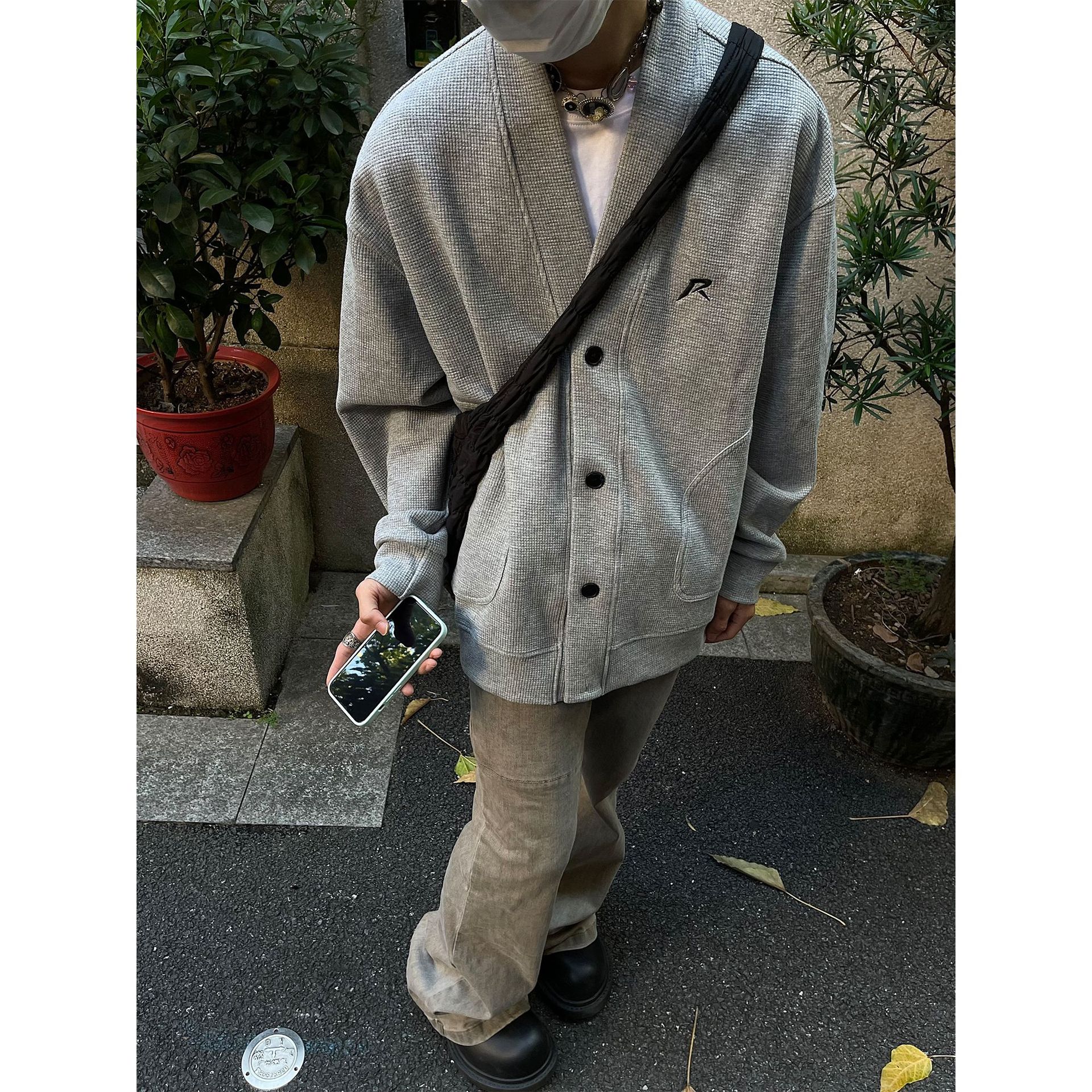 ワッフルvネックカーディガン男性ファッションブランド春秋2023新型怠惰風ゆるいカジュアルコート