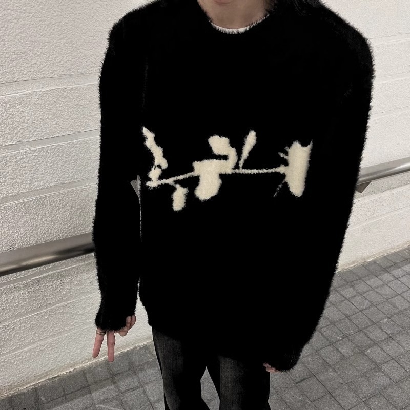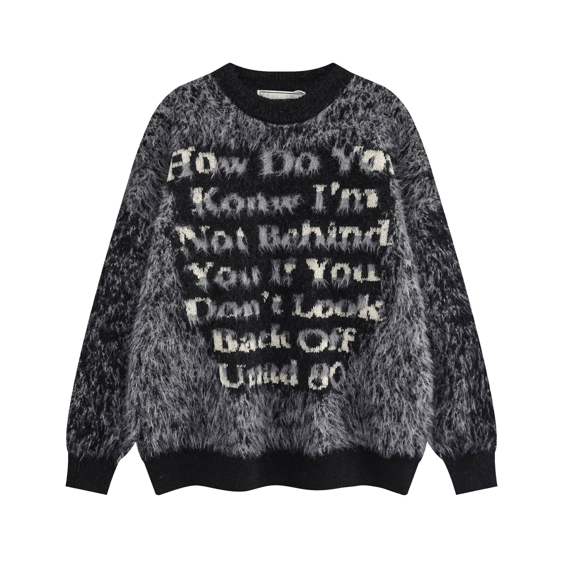 Feel lonlyアメリカのレトロなアルファベットのジャカードの丸首のニットのファッションのブランドのゆったりしているカップルのセーターのコート