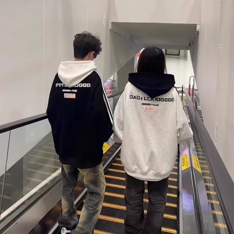 国潮アメリカのストライプの旗のプリントのカーディガンと帽子のパーカーの男女の春のファッションのブランドのゆったりしているカップルのファスナーのコート