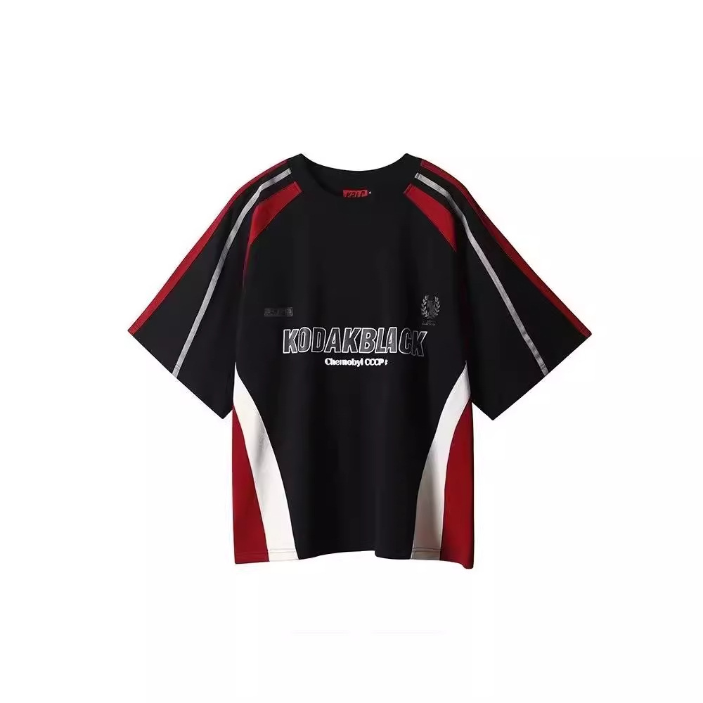アメリカの高街レース服衝突色半袖tシャツ男女ins夏欧米風ゆるいカップルカジュアル五分袖