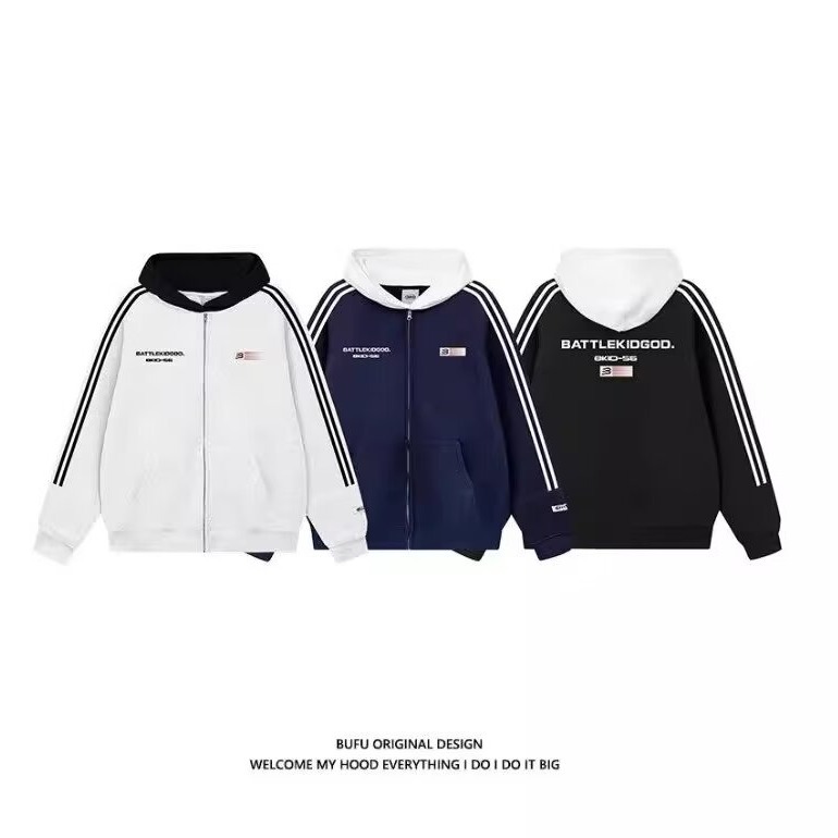 国潮アメリカ式三本のストライプの旗のカーディガンと帽子のパーカー