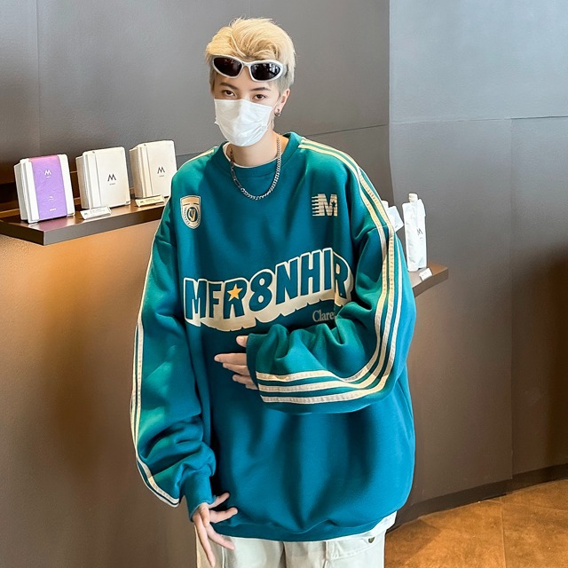 春と秋のレトロなストライプのパーカーの男女のゆるい丸首のプルオーバーの高い街のvibe風の帽子のない長袖の上着