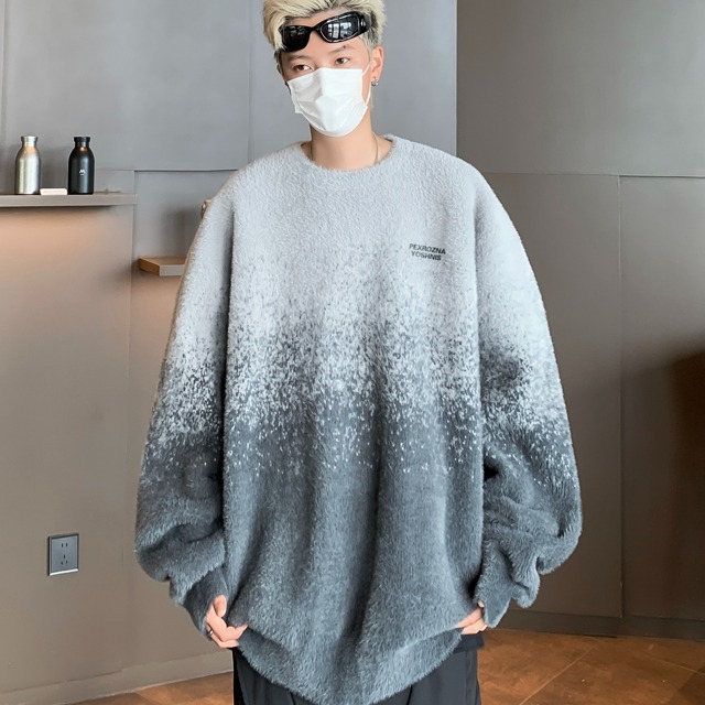 秋の新しいピンクのグラデーションのプルオーバーのセーターの女性の怠惰なデザイン感があります。