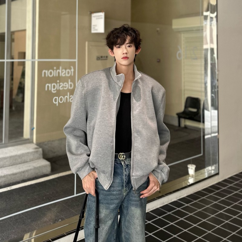 国境を越えた対外貿易秋のカジュアルカーディガンの灰色ジャケット男性郭形ネット赤高級感の短いスタンドカラーのセーター