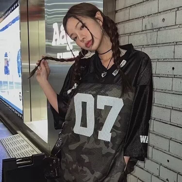 外国貿易07号レトロヒップホップユニフォームゆるい半袖tシャツ女性2025夏新型アメリカ半袖上着男