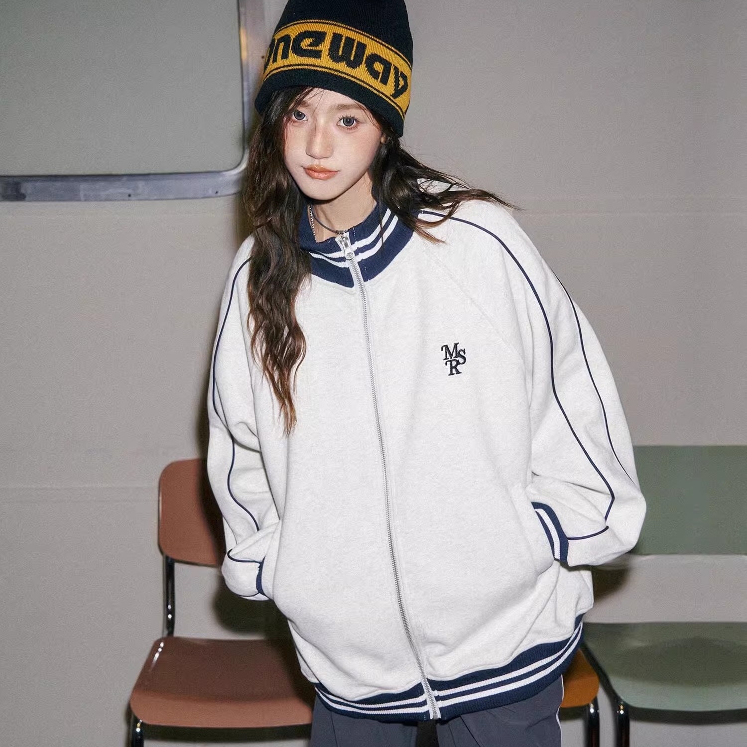 外国貿易の爆発的な灰色の立襟野球服のコートの女性のアメリカのレトロなガーディアンのカジュアルな怠惰なジャケットの上着の男性