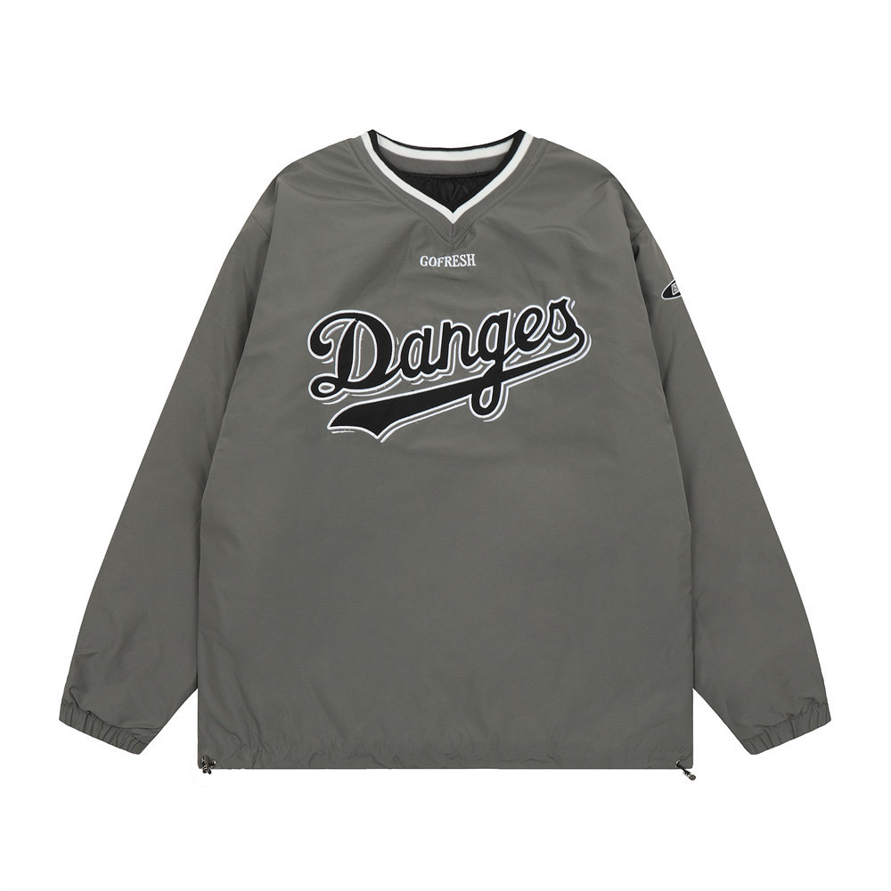 2024新型刺繍アルファベットvネック長袖tシャツ男子プルオーバー運動ゆるい上着アメリカ街潮衣