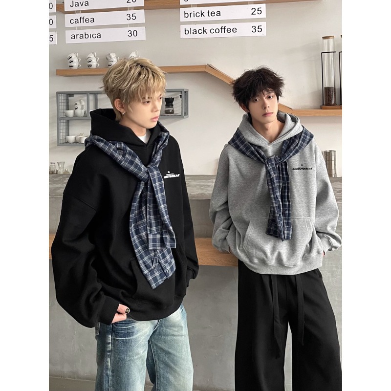 国境を越えたアメリカのレトロなアルファベットのプリントは、帽子付きのガーディアンと男女の同じファッションブランドのゆるいカジュアルなカップルのフードにぶつかった